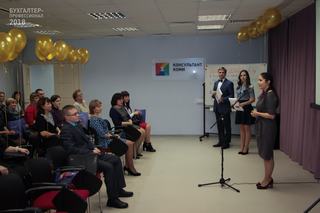 Жюри, участники и финалисты конкурса собрались 30 ноября в актовом зале компании «Консультант Коми» для подведения итогов конкурса. На открытии церемонии награждения с приветственной речью выступила генеральный директор компании «Консультант Коми» Елена Пелевина. Она поблагодарила партнеров мероприятия и всех участников конкурса, а также напомнила о важности профессии бухгалтера в 21 веке: |
